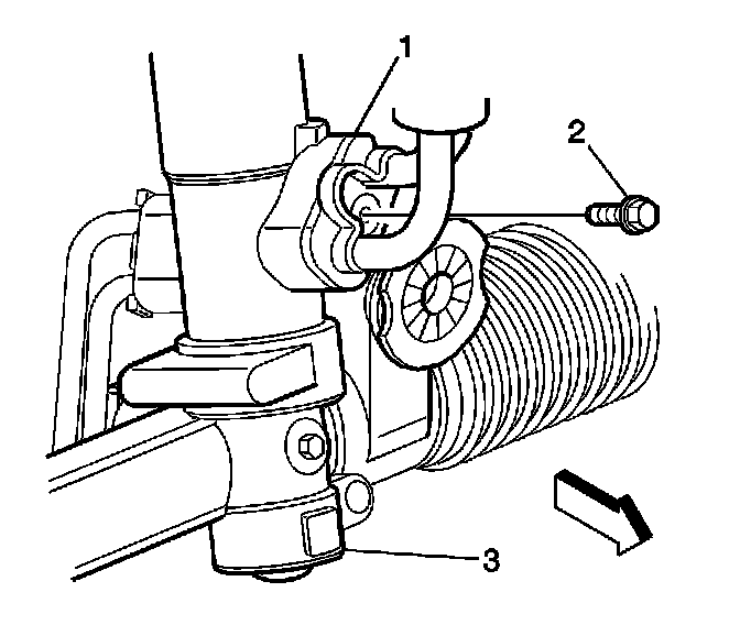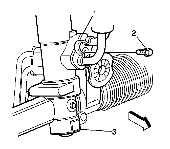 9. Connect the power steering hose assembly (1) to the power steering gear (3).