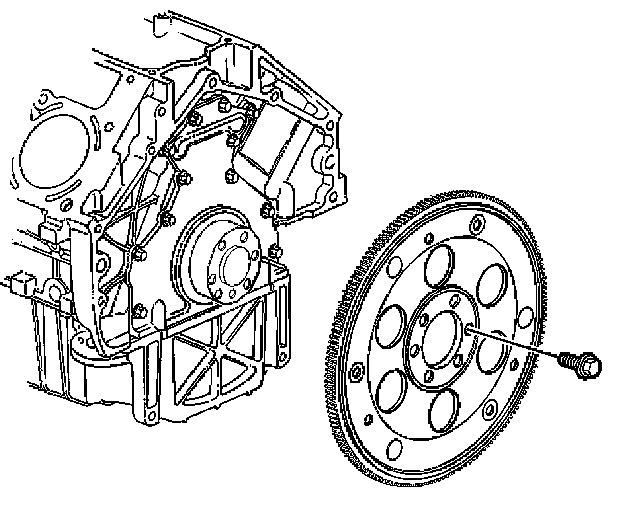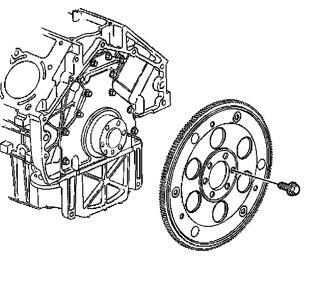 2. Apply threadlock GM P/N 12345382 (Canadian P/N 10953489) or equivalent to the threads of the flywheel bolts.