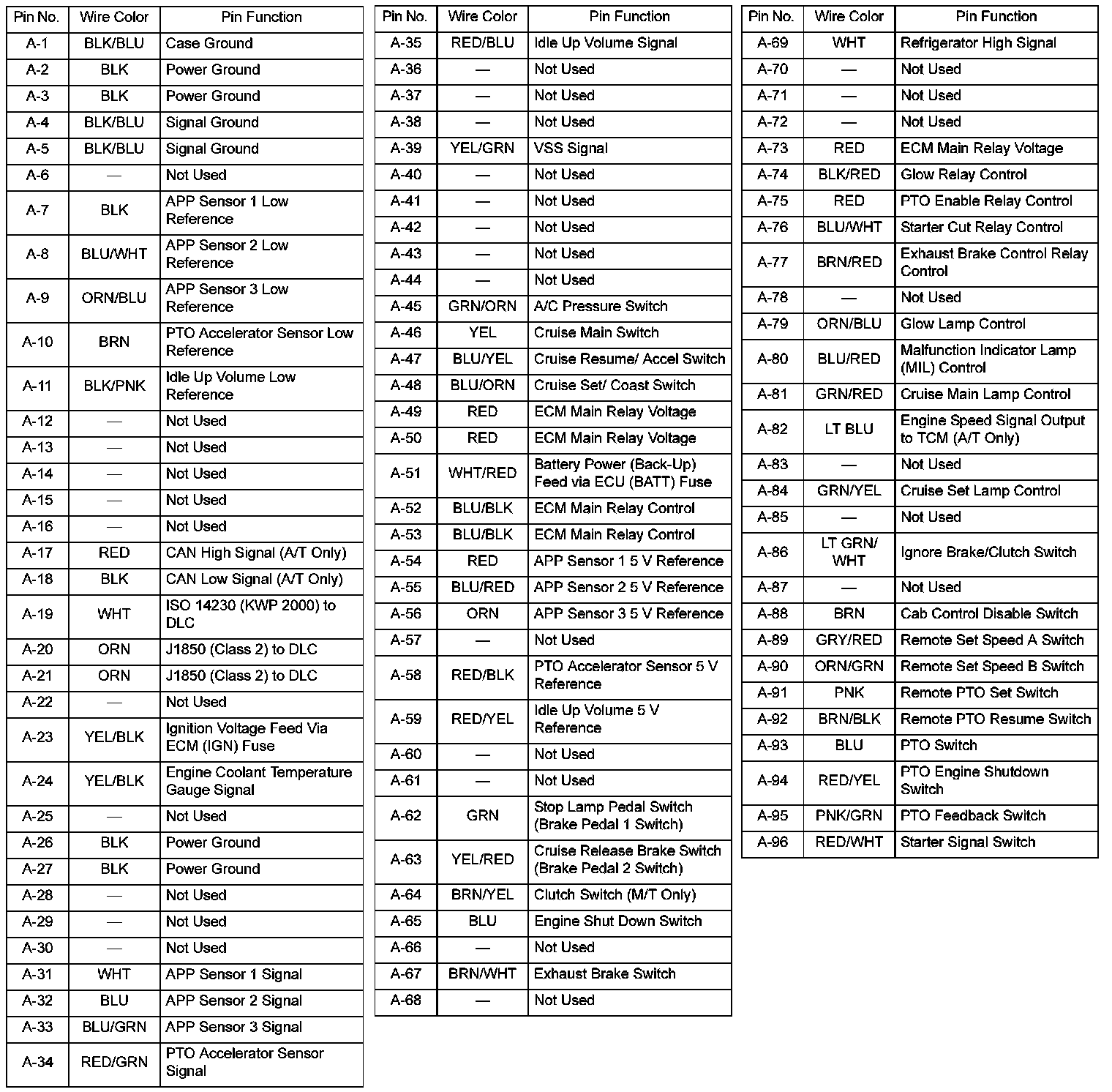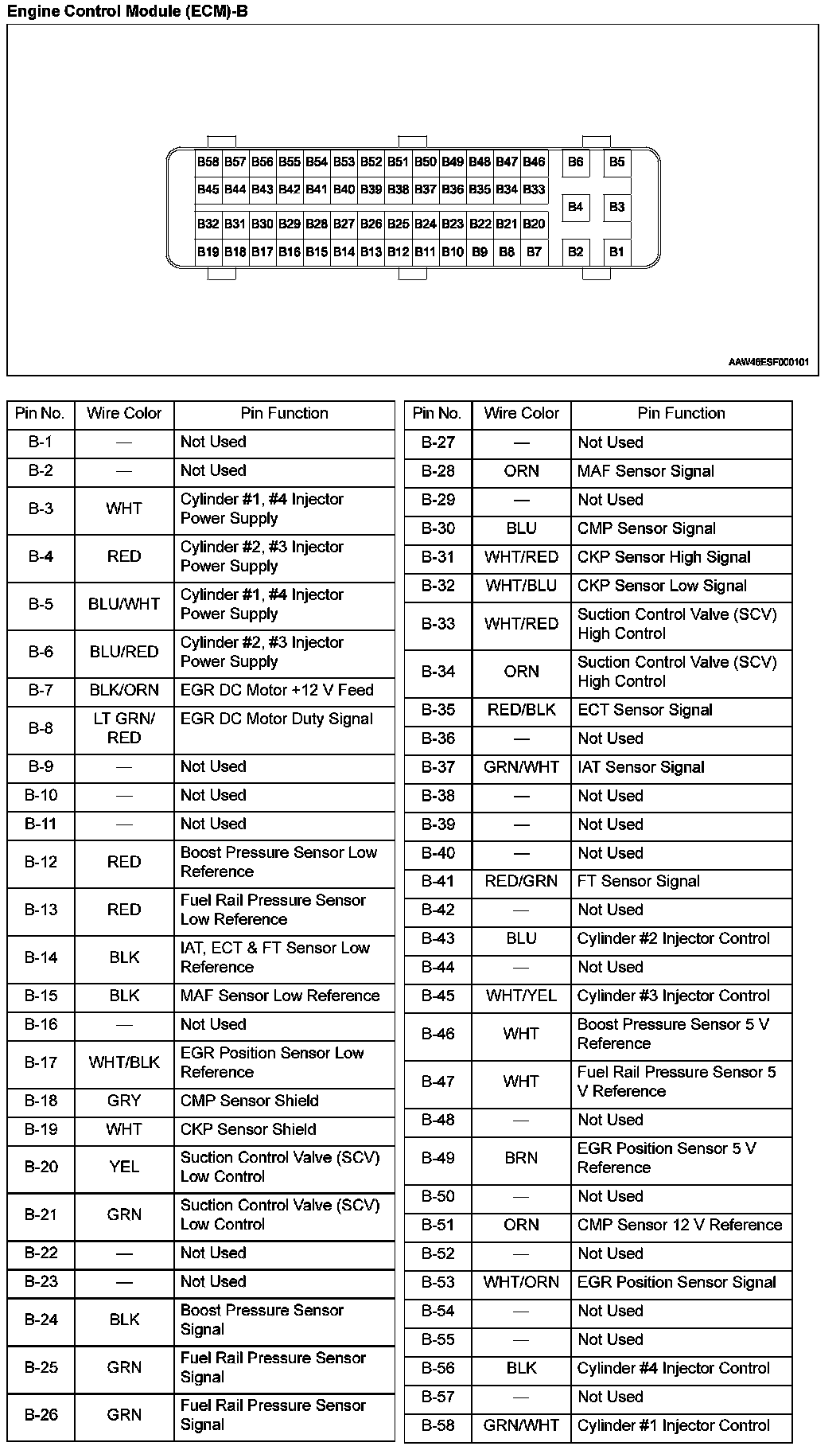 Engine Control Module (ECM) Connector End Views