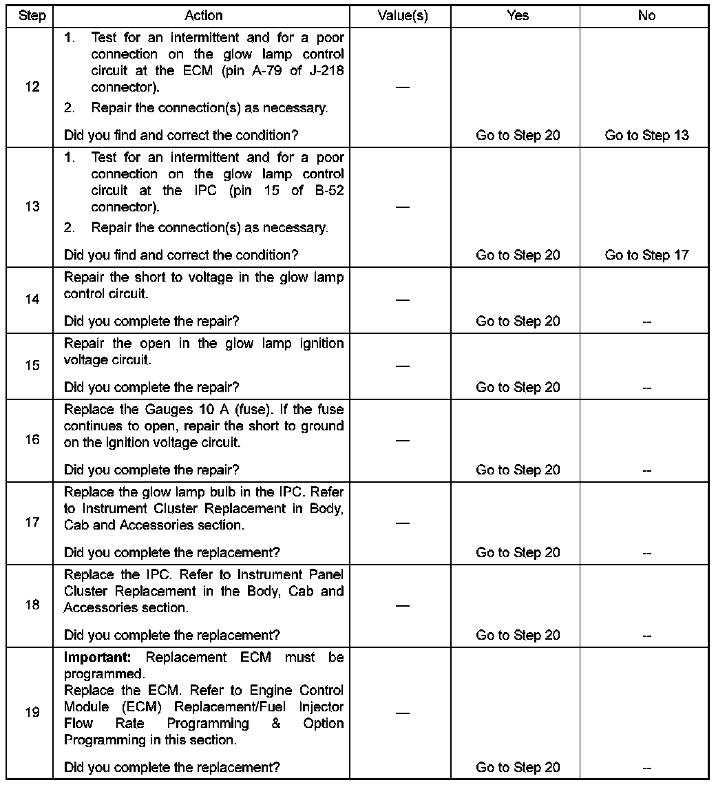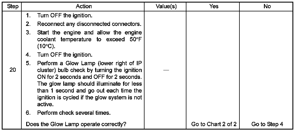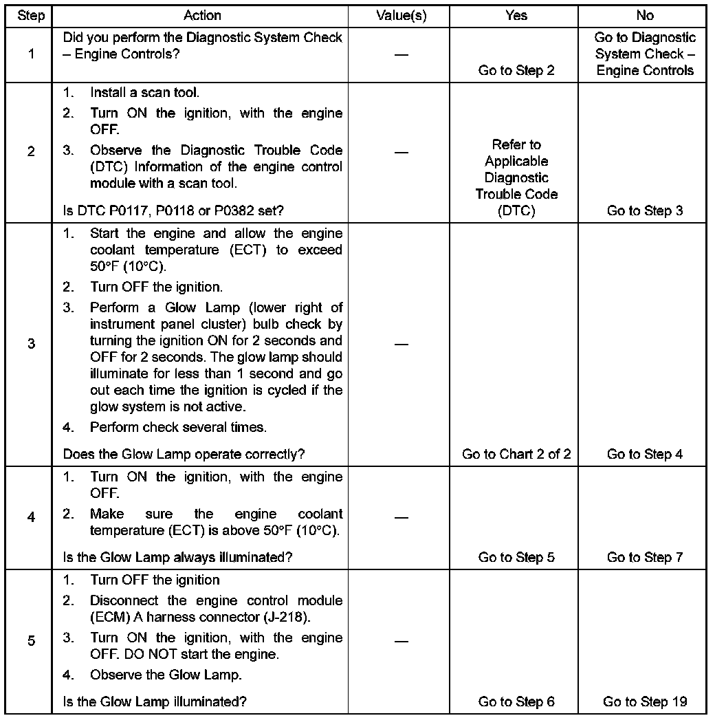 - The glow control system operates when the engine coolant temperature is less than 50 °F (10 °C).