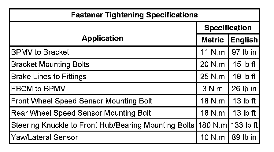 Fastener Tightening Specifications: