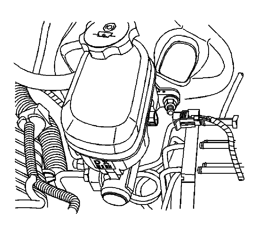 2. Using pair of needle nose pliers, compress the locking tabs for the fluid sensor located at the opposite side of the master cylinder.
