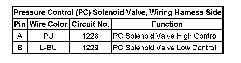Pressure Control (PC) Solenoid Valve, Wiring Harness Side: