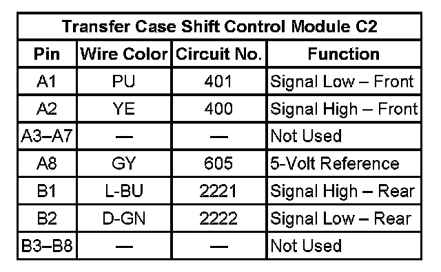 Transfer Case Shift Control Module C2: