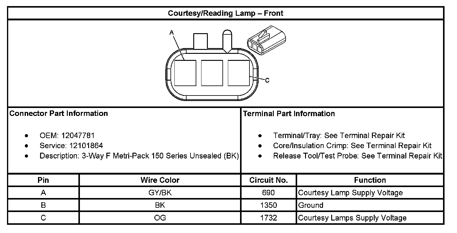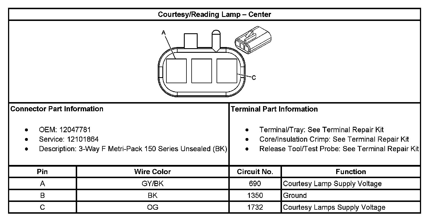 Courtesy/Reading Lamp (3rd Row) - Right (Early Production Only W/Long Wheel Base):