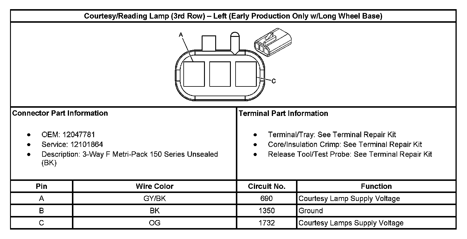 Courtesy/Reading Lamp (3rd Row) - Left (Early Production Only W/Long Wheel Base):