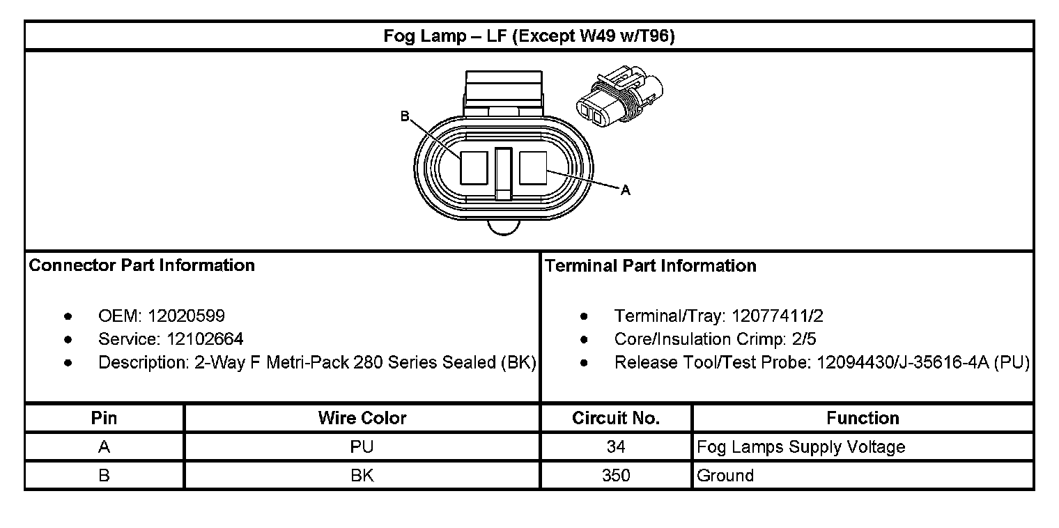 Fog Lamp - LF (With RPO Code W49 And T96):
