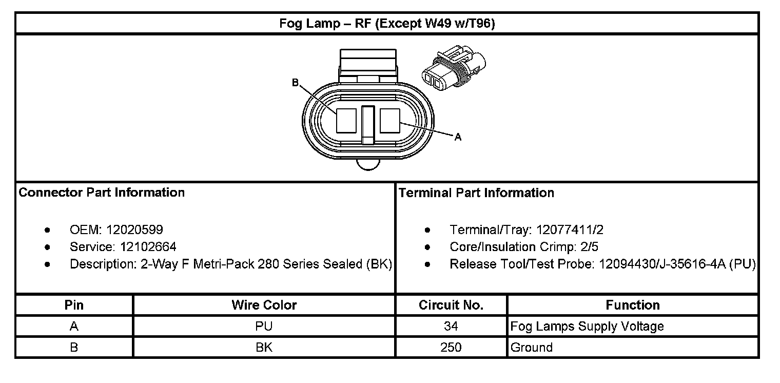 Fog Lamp - RF (Except RPO Code W49 With RPO Code T96):
