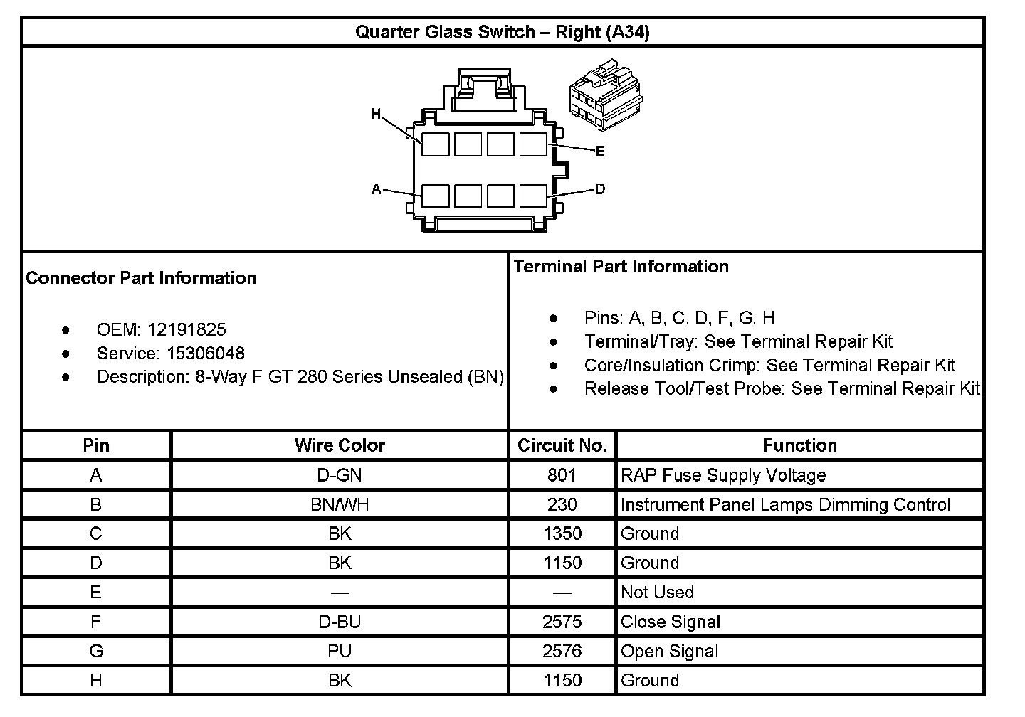 Quarter Glass Switch - Right (With RPO Code A34):