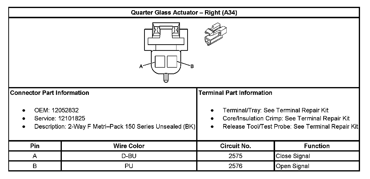 Quarter Glass Actuator - Right (With RPO Code A34):