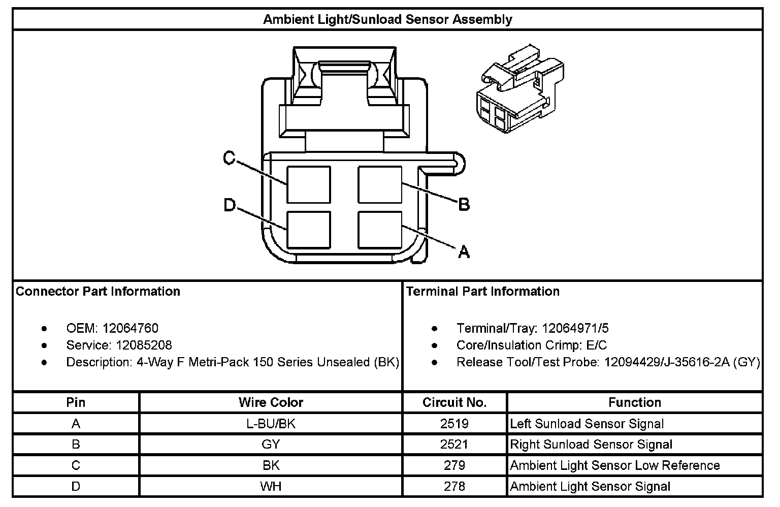 Ambient Light/Sunload Sensor Assembly: