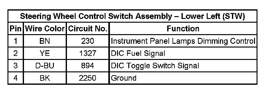 Steering Wheel Control Switch Assembly - Lower Left (STW):