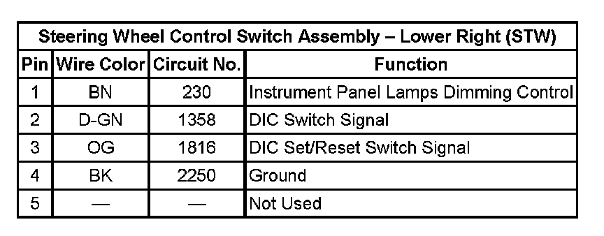 Steering Wheel Control Switch Assembly - Lower Right (STW):