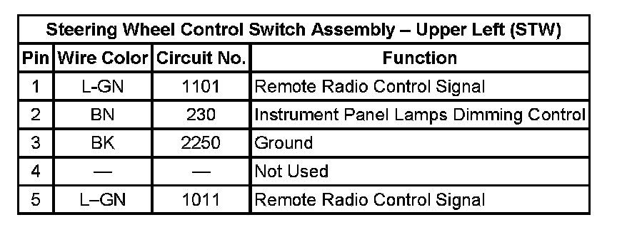 Steering Wheel Control Switch Assembly - Upper Left (STW):