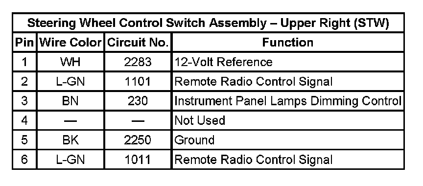 Steering Wheel Control Switch Assembly - Upper Right (STW):