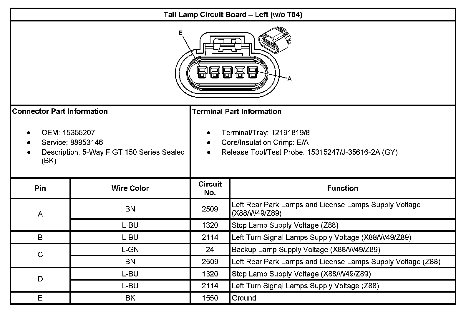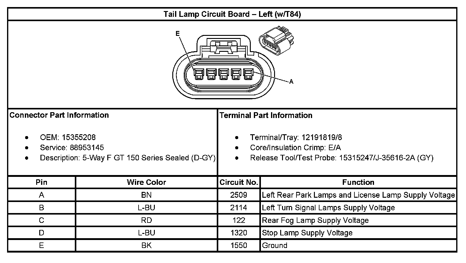 Tail Lamp Circuit Board - Left (With RPO Code T84):