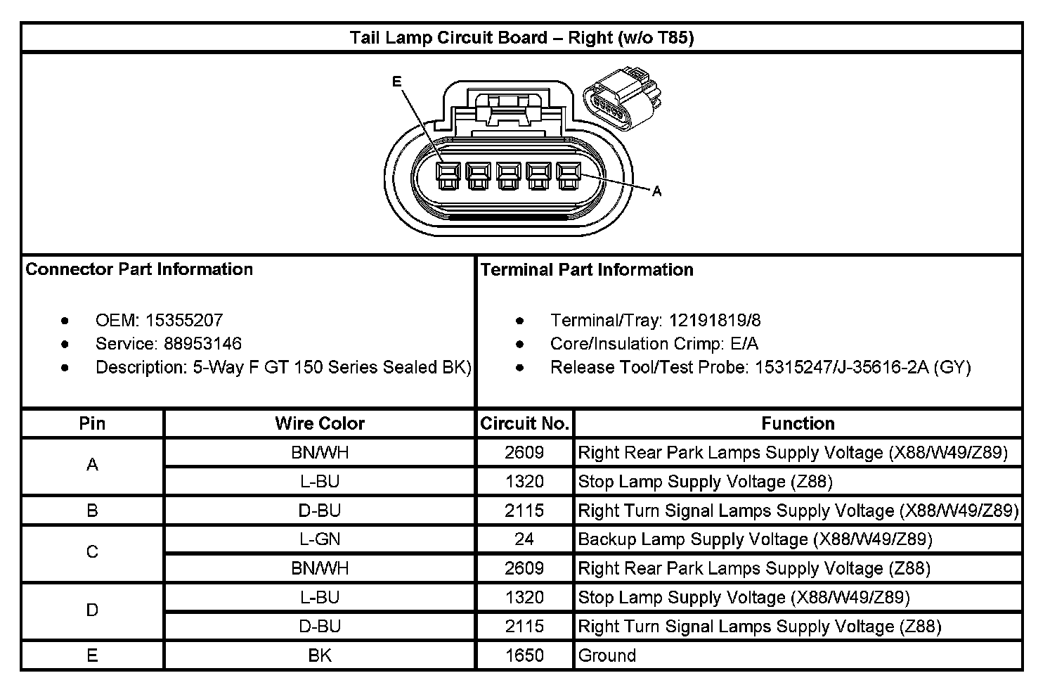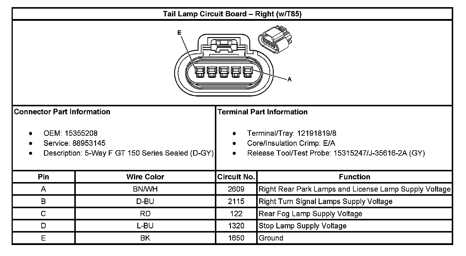 Tail Lamp Circuit Board - Right (With RPO Code T85):