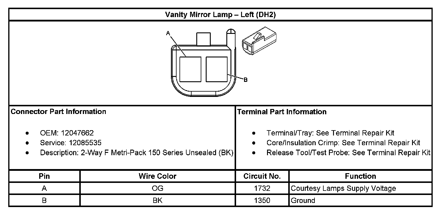 Vanity Mirror Lamp - Left (With RPO Code DH2):