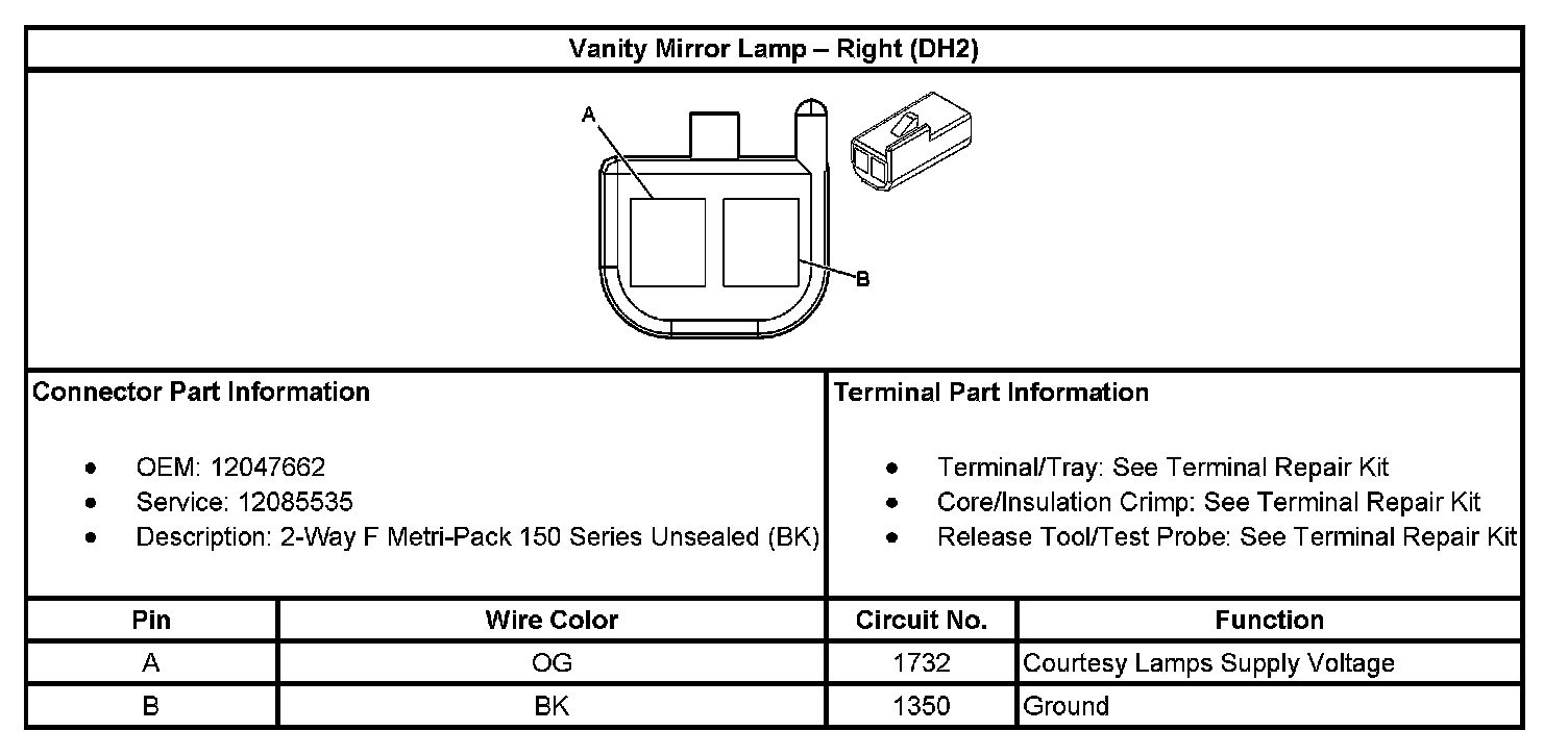 Vanity Mirror Lamp - Right (With RPO Code DH2):