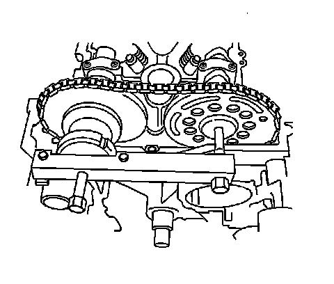 - Install the J 44222 onto the cylinder head in order to keep from disturbing the timing chain components.
