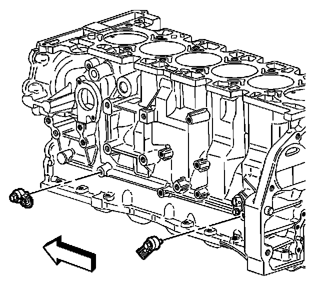 - Tighten the front (1) engine block oil gallery plug to 80 N.m (40 lb ft).