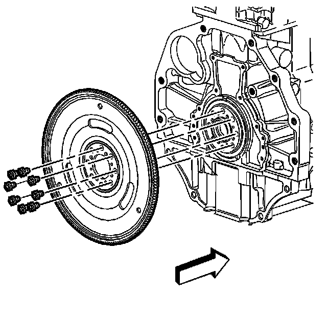 1. Tighten the new flywheel bolts to 25 N.m (18 lb ft).