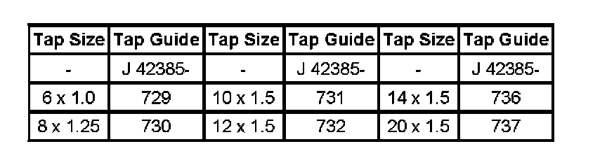 The tool kit J 42385-400 is designed for use with either a suitable tap wrench or drill motor. Limited access and larger hole repair may process better using a tap wrench. An extension J 43965 may also be necessary to drive the thread repair tooling dependent on access to the hole being repaired.