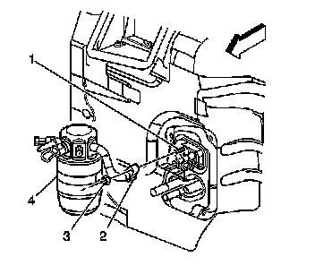 4. Remove the nut (3) retaining the accumulator (4) to evaporator (1).