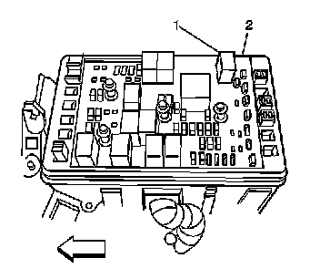 1. Install the compressor relay (1) to the underhood fuse block (2).