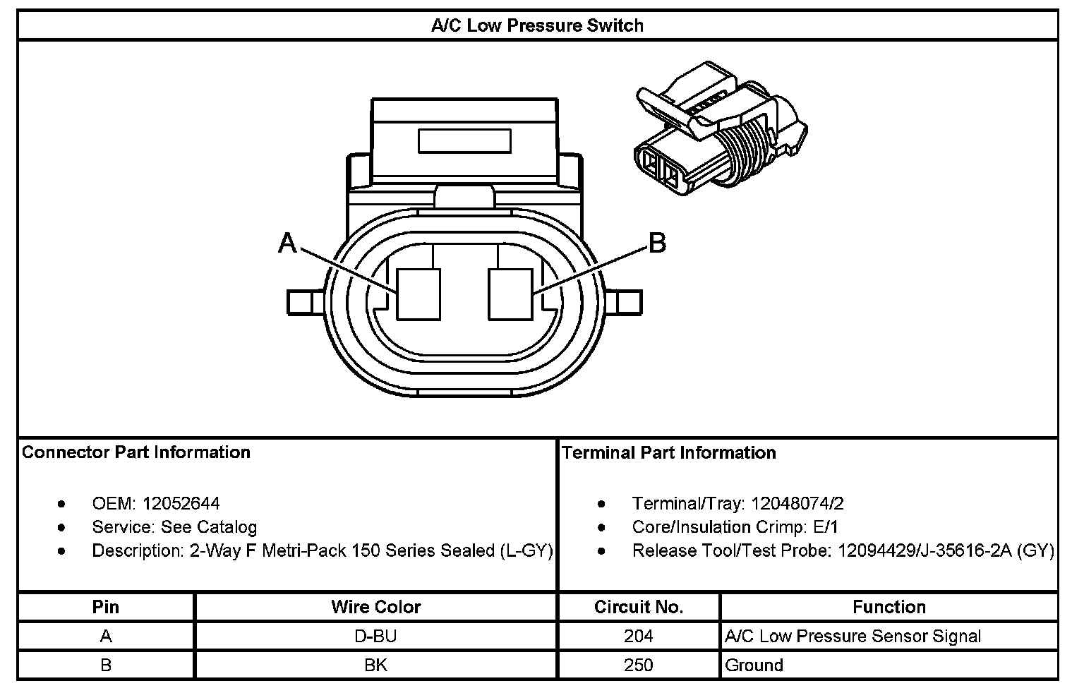 A/C Low Pressure Switch: