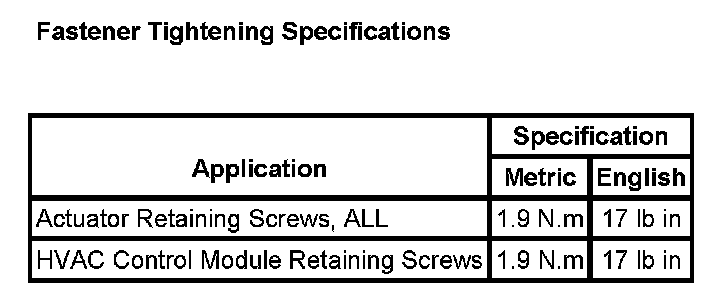 Fastener Tightening Specifications: