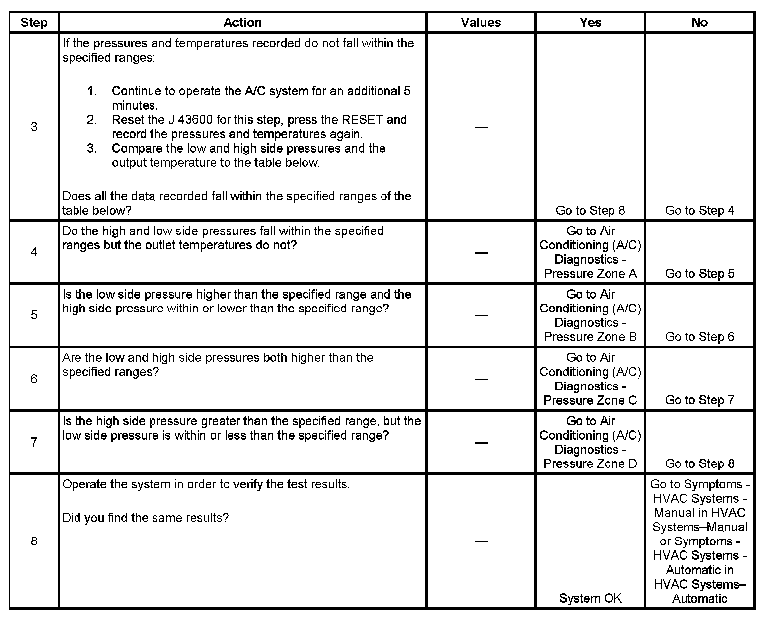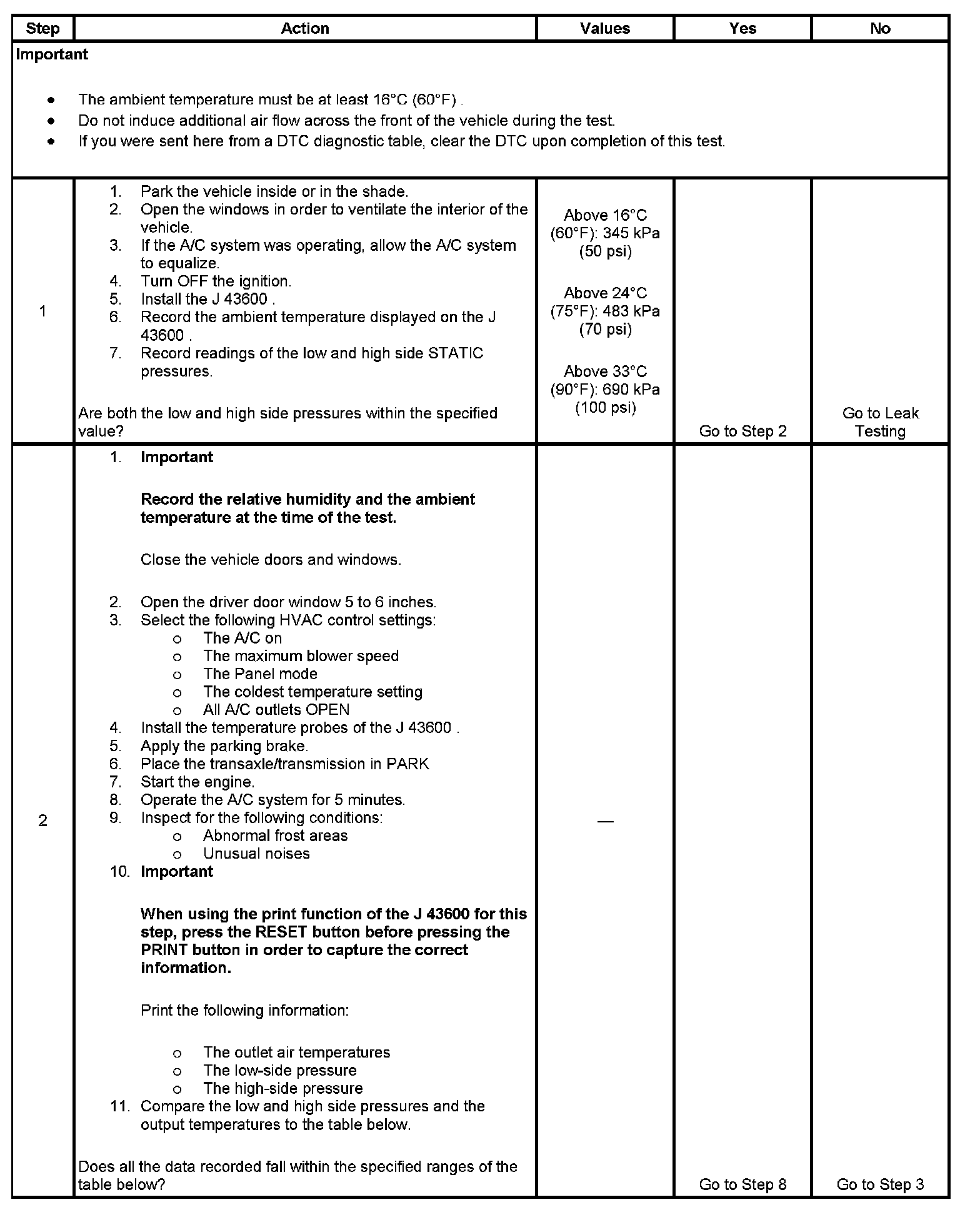 1. This step determines if the A/C system has at least the minimum refrigerant charge to operate the system without damage.