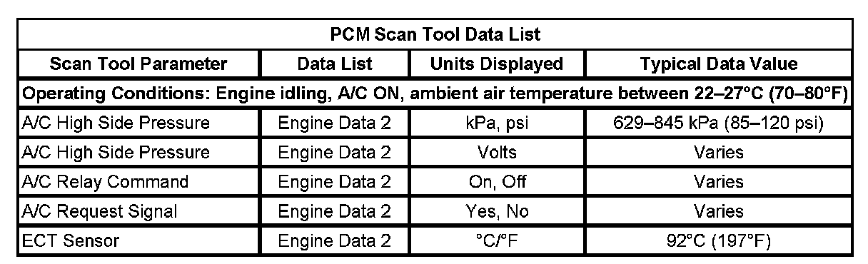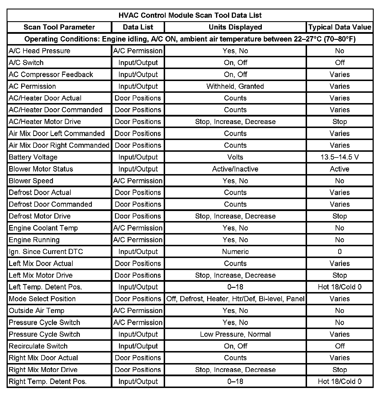 HVAC Control Module Scan Tool Data List:
