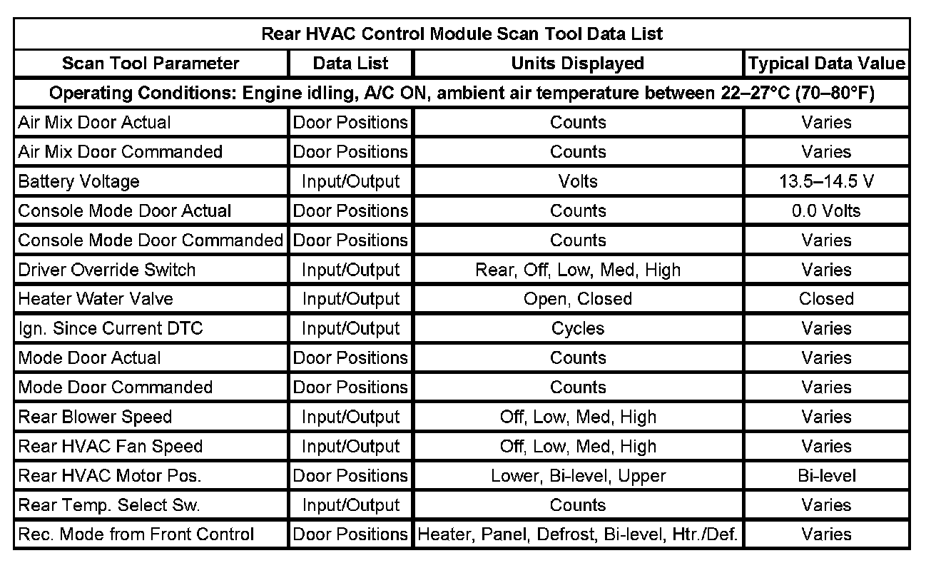 Rear HVAC Control Module Scan Tool Data List: