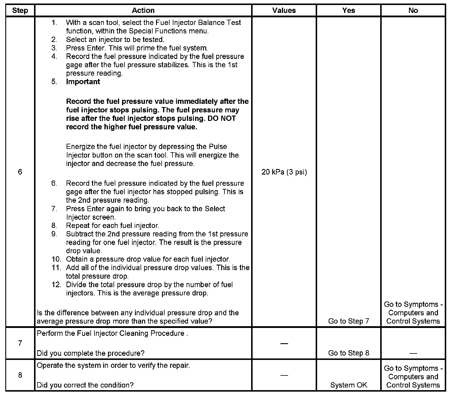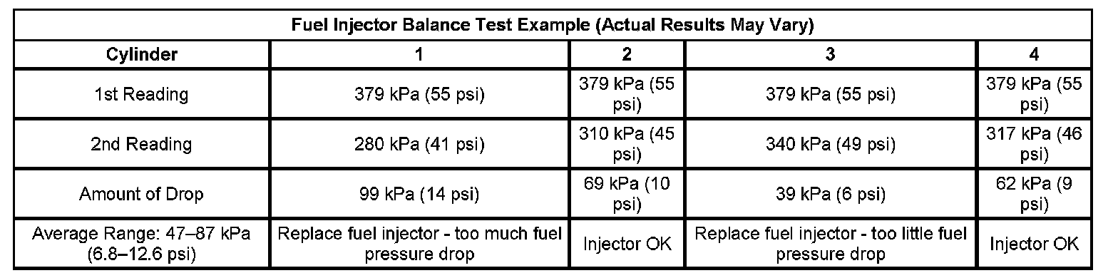 Fuel Injector Balance Test Example (Actual Results May Vary):