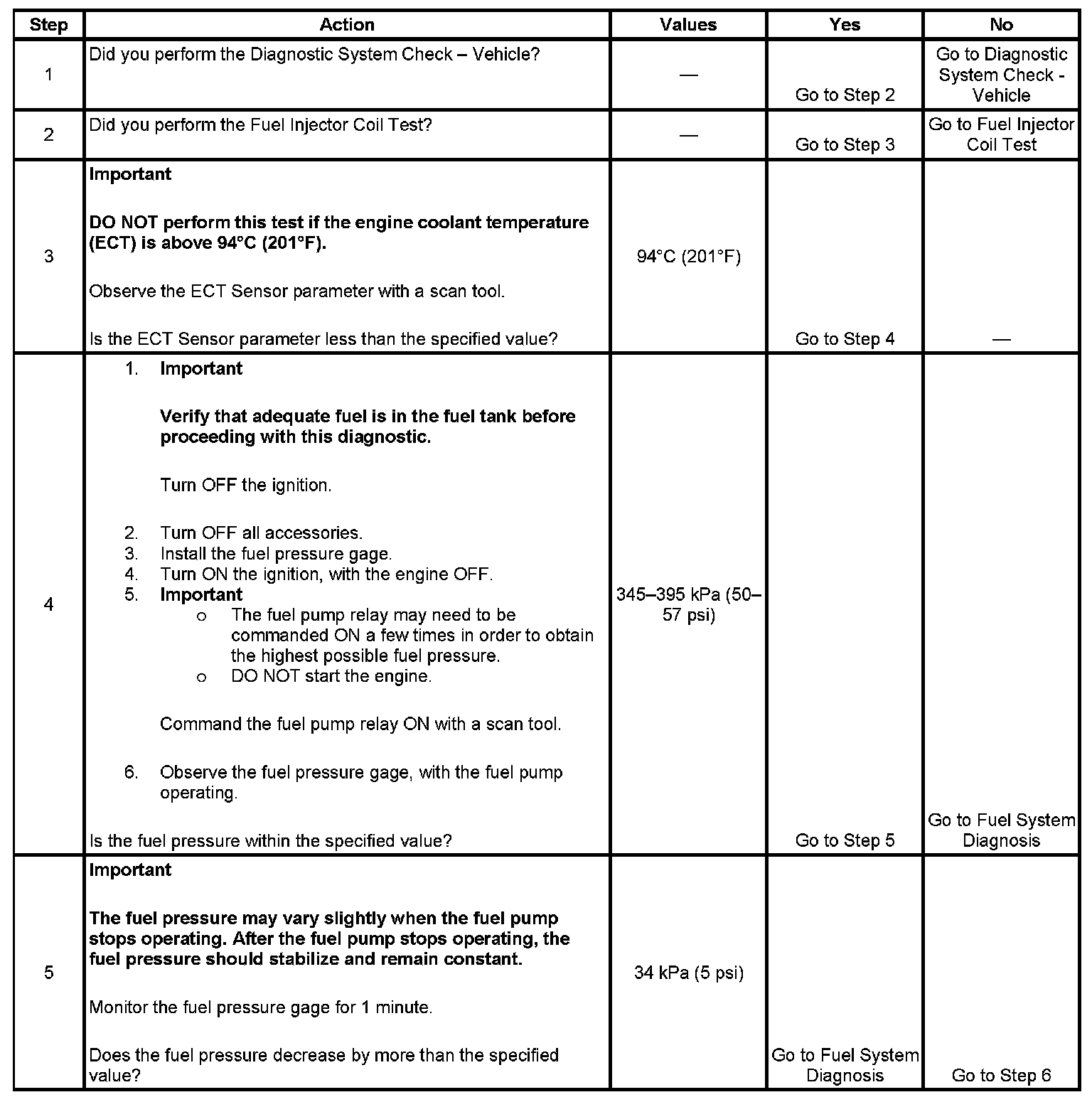 3. The engine coolant temperature (ECT) must be below the operating temperature in order to avoid irregular fuel pressure readings due to hot soak fuel boiling.