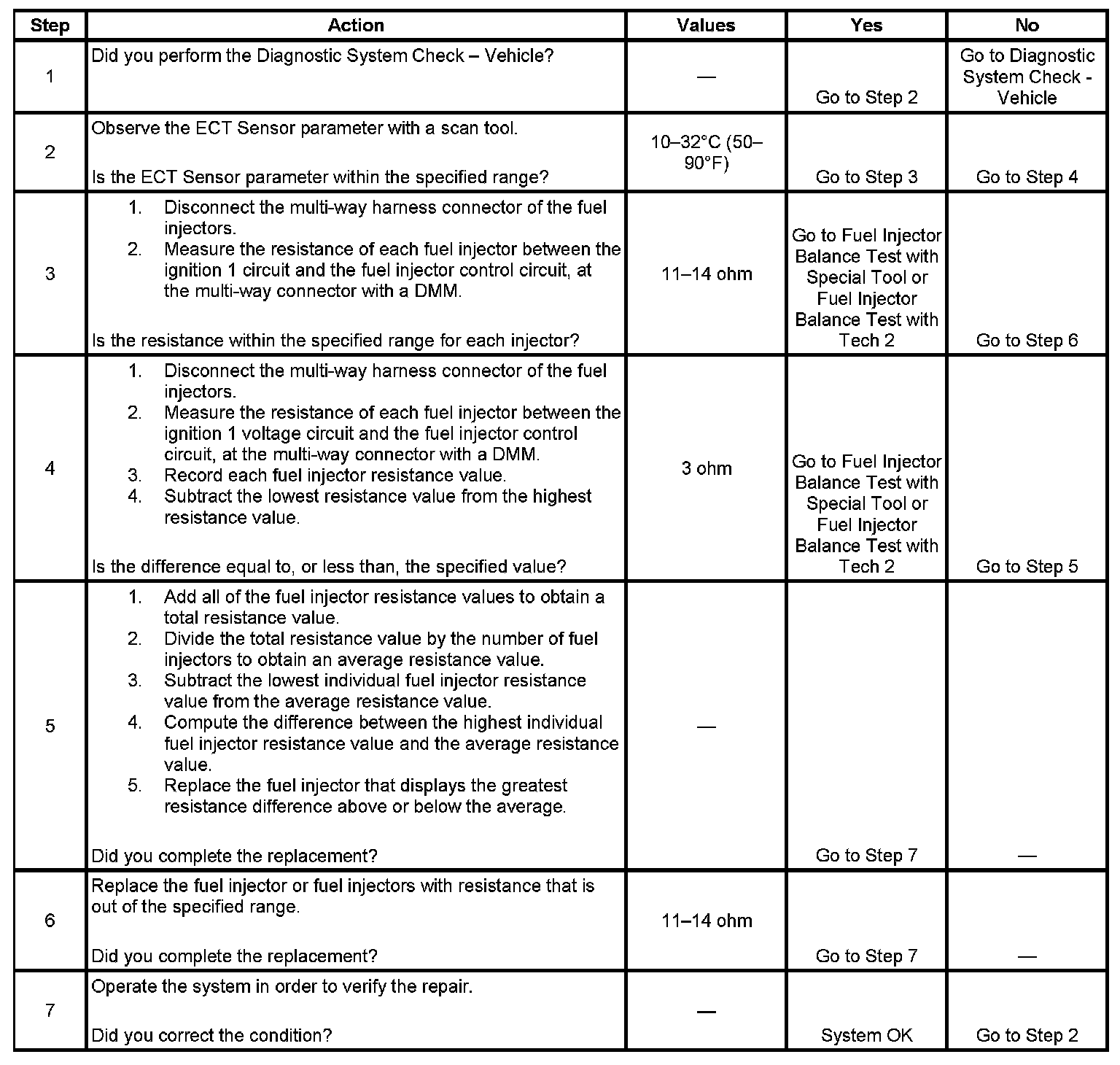 - Perform the fuel injector coil test within the conditions of the customer's concern. A fuel injector condition may only be apparent at a certain temperature, or under certain conditions.