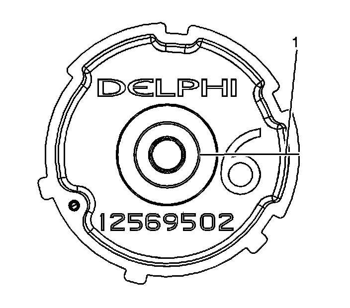2. Scribe or draw a line (1) on the camshaft position actuator outer ring face, in the full advanced position. With the engine at TDC on #1 cylinder, the wording should be level.