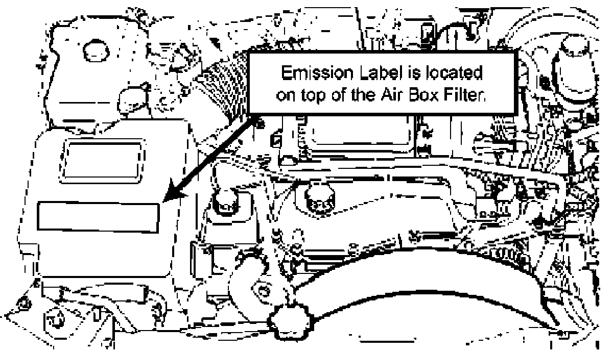 3. Locate the existing emission label on the engine air filter box.