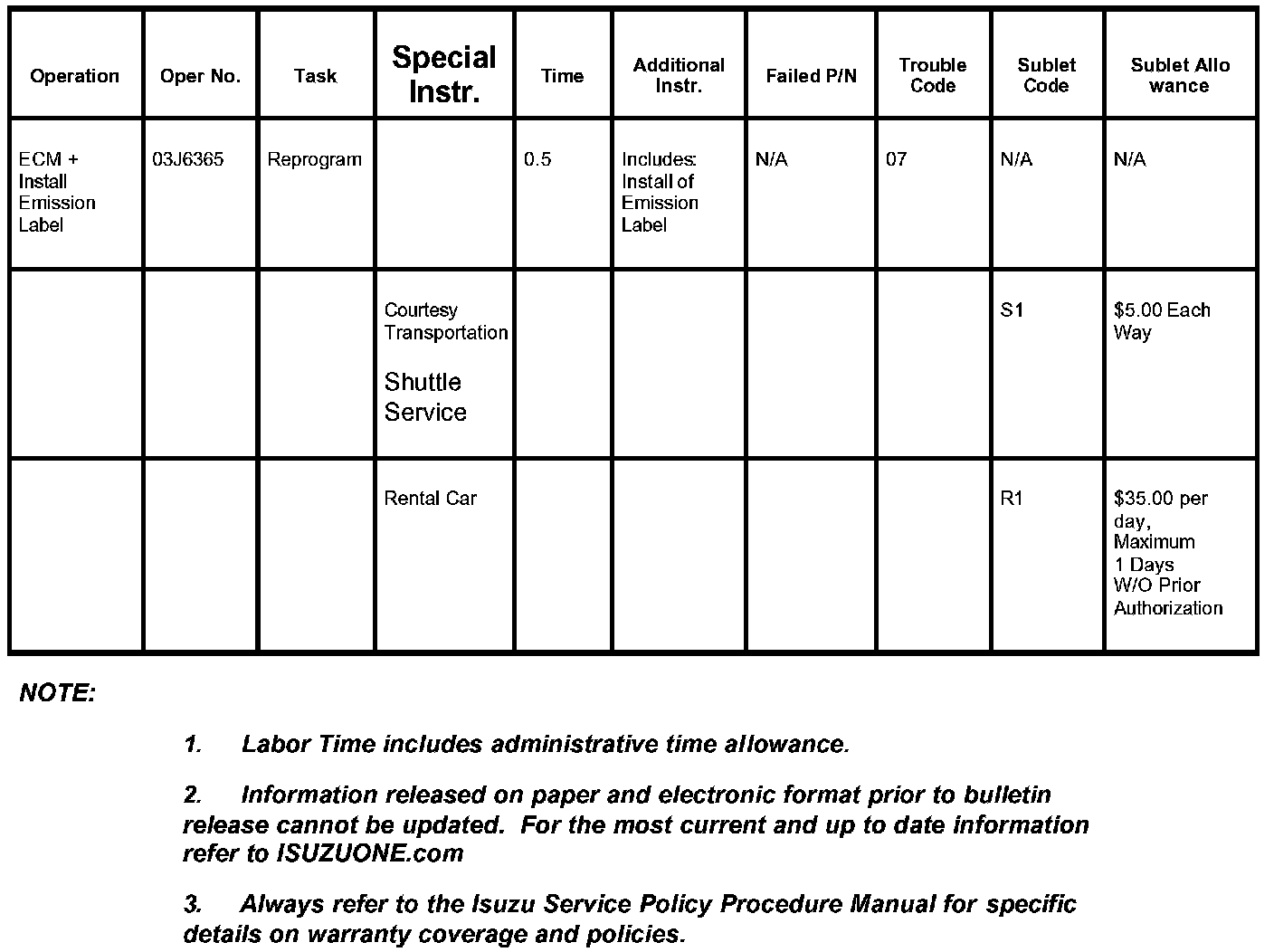 Isuzu dealers are required to service all eligible vehicles at no charge to the owner, regardless of mileage, age of vehicle or ownership.