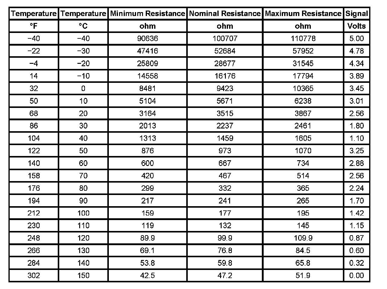 Transmission Fluid Temperature (TFT) Sensor Specifications: