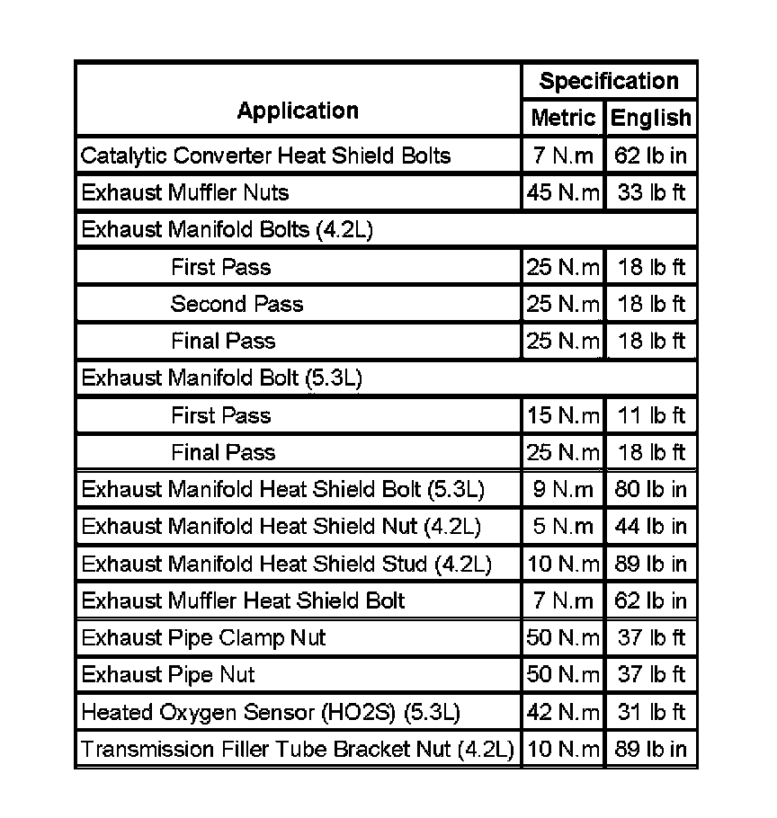 Fastener Tightening Specifications:
