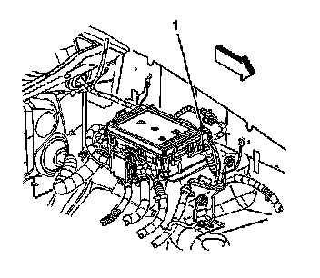 7. Connect the positive cable to the junction block and secure the positive cable with the bolt (1).