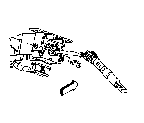 Notice: The front wheels of the vehicle must be maintained in the straight ahead position and the steering column must be in the LOCK position before disconnecting the steering column or intermediate shaft. Failure to follow these procedures will cause improper alignment of some components during installation and result in damage to the SIR coil assembly.