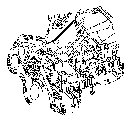 5. Install the mounting screw (2) to the left HVAC floor duct.