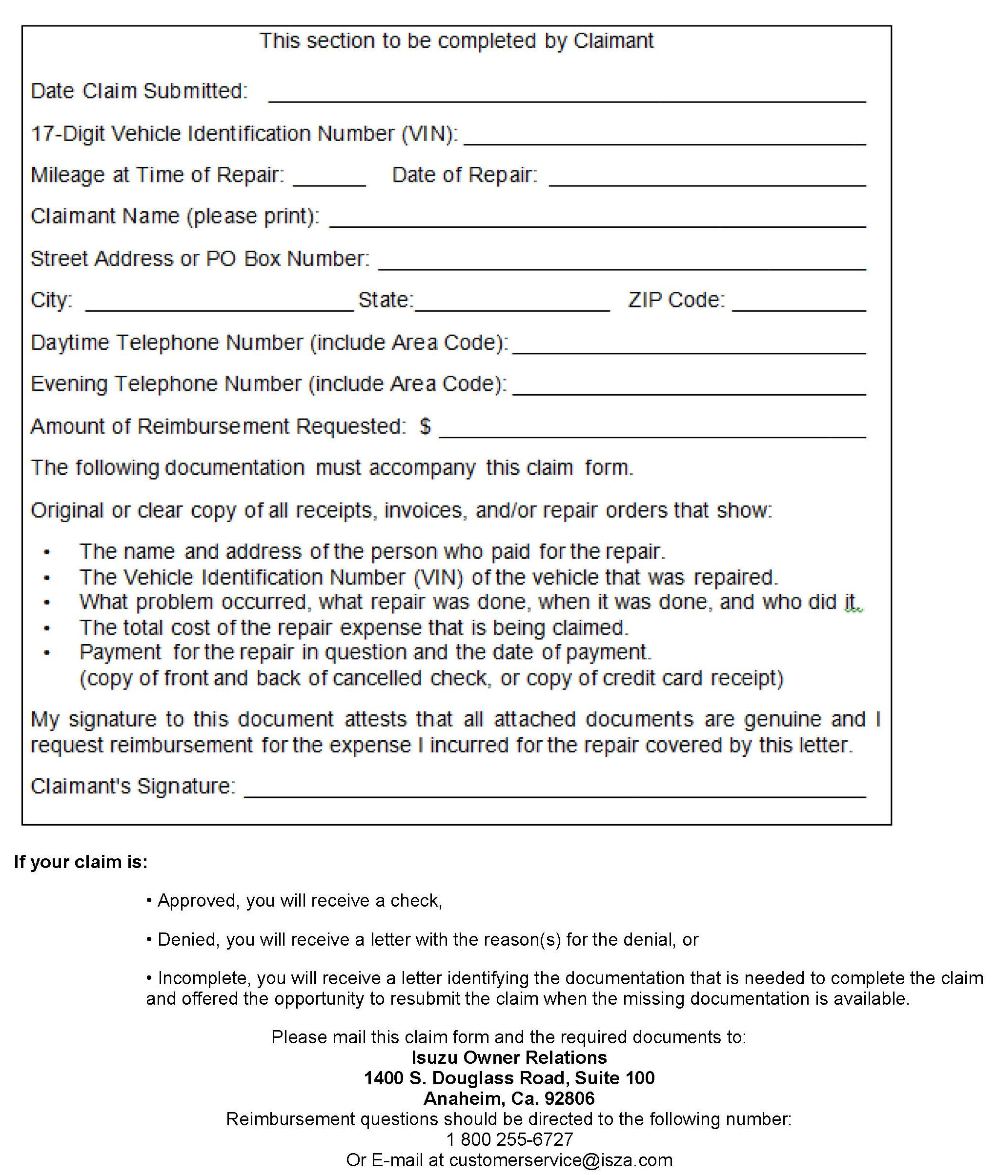 Parts required to complete this special policy are to be obtained from American Isuzu Parts Distribution Network (AIPDN).