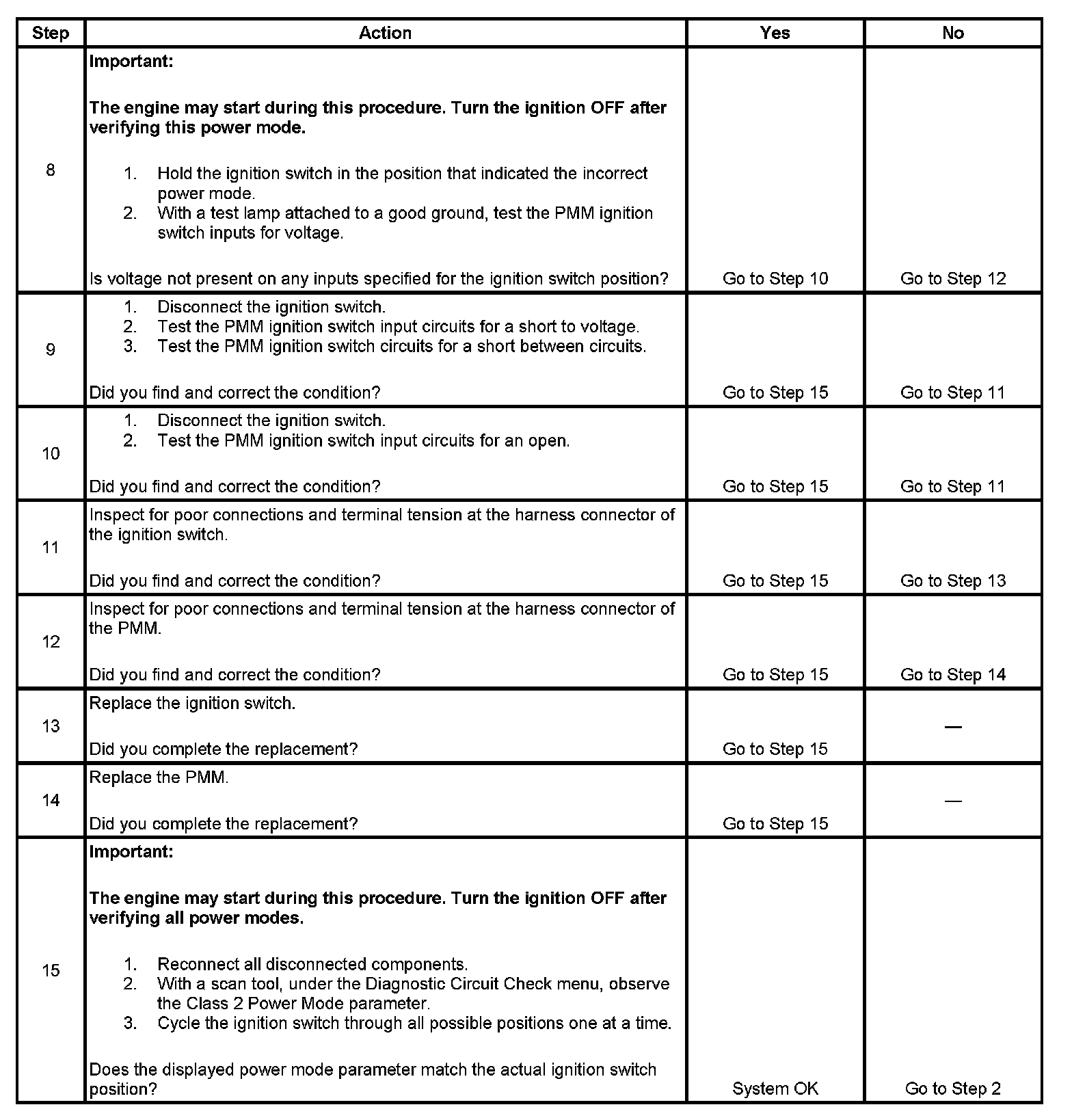 9. If any ignition switch parameters that should be inactive in the present ignition switch position are active, 2 ignition switch signal circuits may be shorted together.