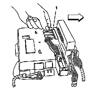10. With an upward motion, remove the BCM (1) from the rear electrical center.