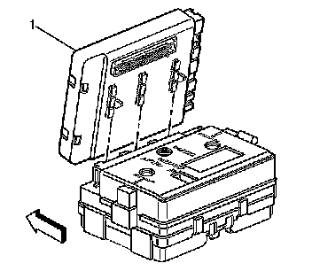1. Index the slots on the BCM (1) to the rear electrical center.