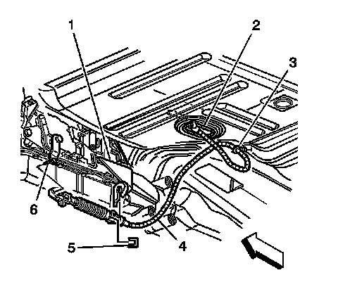 6. Remove the cable from the retainer (3) on the floor panel. If the vehicle is equipped with 4WD, remove the cable from the retainers located on the transfer case.